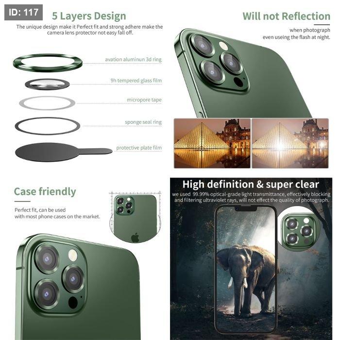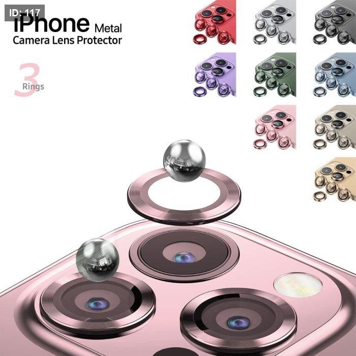 حماية عدسة كاميرا معدنية للايفون ( ثلاث قطع )، الحماية مصنوعة من زجاج قوي مضاد للخدوش.