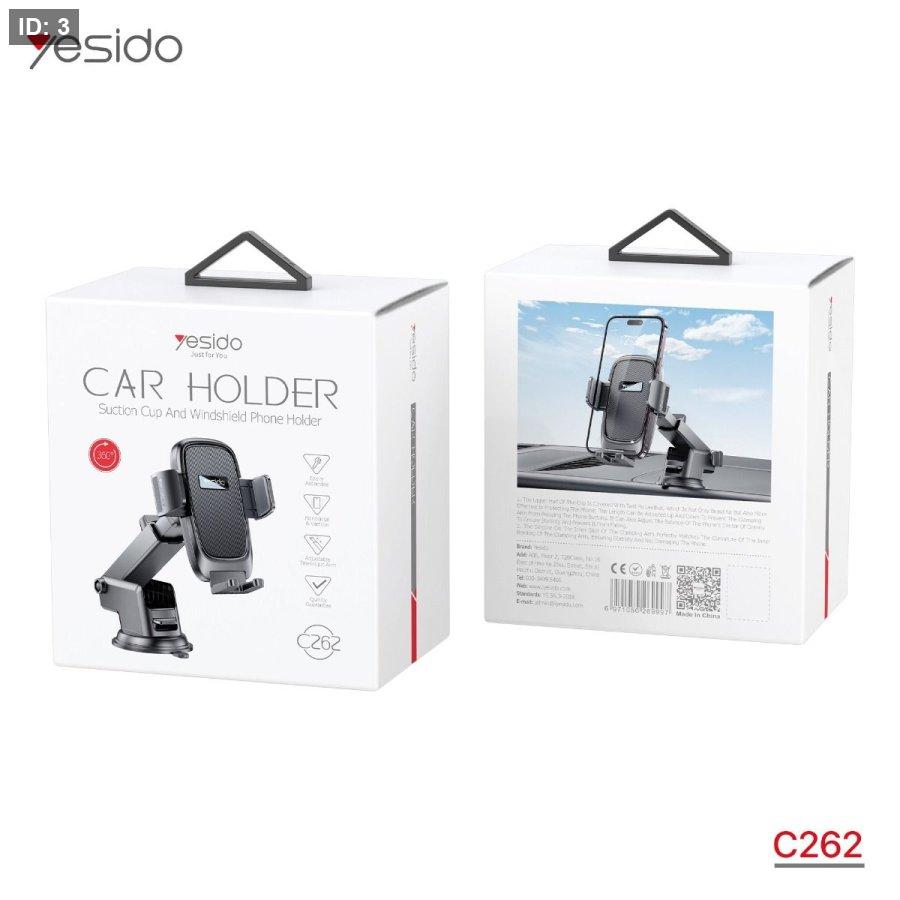 حمالة الهاتف YESIDO C-262 كبسة بذراع طويل، كوب شفط يوضع على (التابلو والزجاج الأمامي).