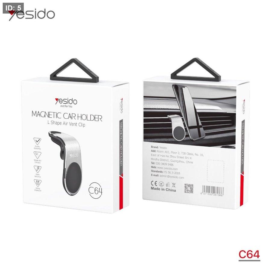 حمالة هاتف YESIDO C-64 المغناطيسية، صغيرة الحجم على شكل حرف L وتوضع بفتحات التهوية للسيارة.