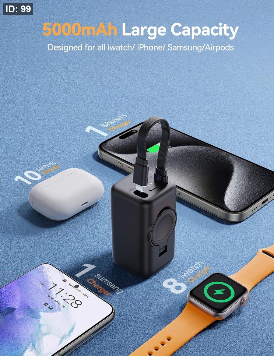 بقوة 5000 مللي امبير وبسرعة شحن 18W مكان مخصص لشحن ساعة ابل .